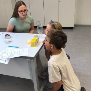 Kurz vor den Sommerferien ging es für die 3. Klassen auf zur KGS. Dort hatten die KGS-Schüler im Rahmen der dort stattfindenden Projektwoche viele kleine naturwissenschaftliche Versuche vorbereitet, die sie nun mit den interessierten Drittklässlern gemeinsam durchführten. Viel gab es zu entdecken und auszuprobieren. Am Ende waren sich alle Kinder einig: "Wir freuen uns schon sehr auf den Chemie- und Physikunterricht an der neuen Schule!"