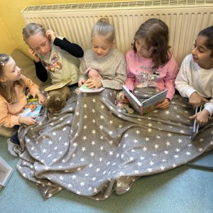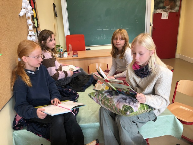 * Im 3. Jahrgang brachten die Schüler am Vorlesetag ihre Lieblingsbücher von Zuhause mit. In Kleingruppen lasen sich die Kinder nun in gemütlicher Runde gegenseitig etwas aus ihren Büchern vor.