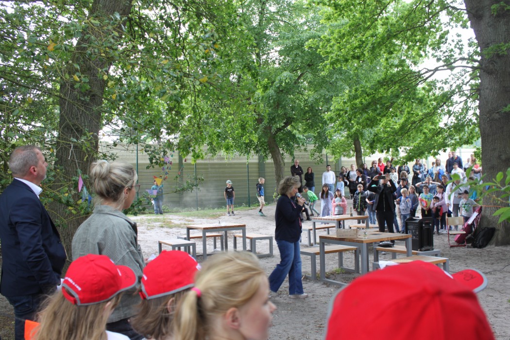 Am Freitag, den 16.05.2025, wurden auf unserem Schulhof feierlich die neuen Sitzgruppen eingeweiht. Die neuen Sitzgruppen waren ein Wunsch der Schülerinnen und Schüler, wie die beiden Schülersprecher Jonathan und Yamen in ihrer kurzweiligen Rede berichteten.