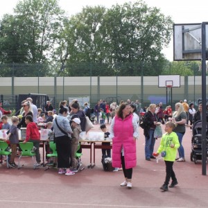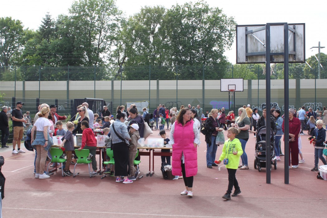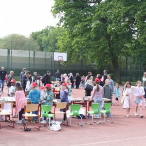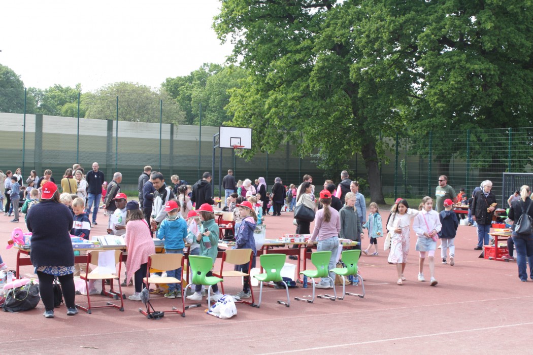 Die Eltern konnten sich währenddessen bei Kaffee und Kuchen stärken. Der Erlös aus dem Flohmarkt und der Cafeteria soll u.a. für einen Trinkwassersprudler und andere Projekte verwendet werden.