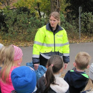 Heute hatten die ersten Klassen Besuch von Frau Dieckmann von der Verkehrspolizei aus Bad Zwischenahn. Gemeinsam mit Frau Diekmann haben die Kinder gefährliche Verkehrspunkte auf ihrem Schulweg gesucht. Diese haben sie dann mit „kleinen Füßchen“ markiert.