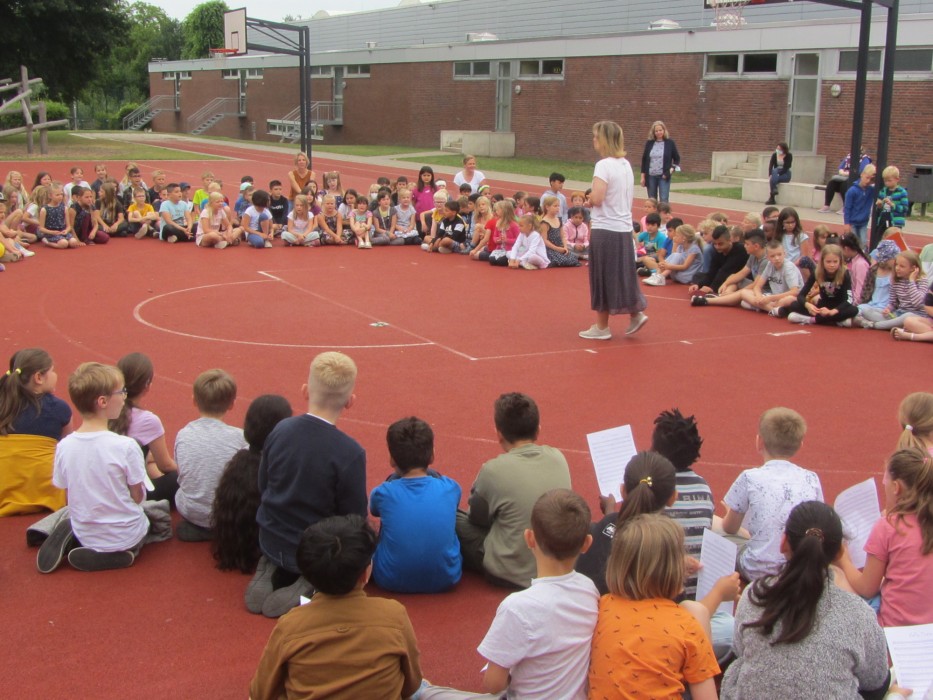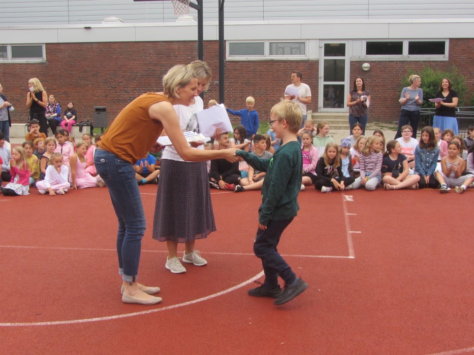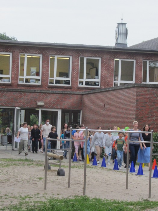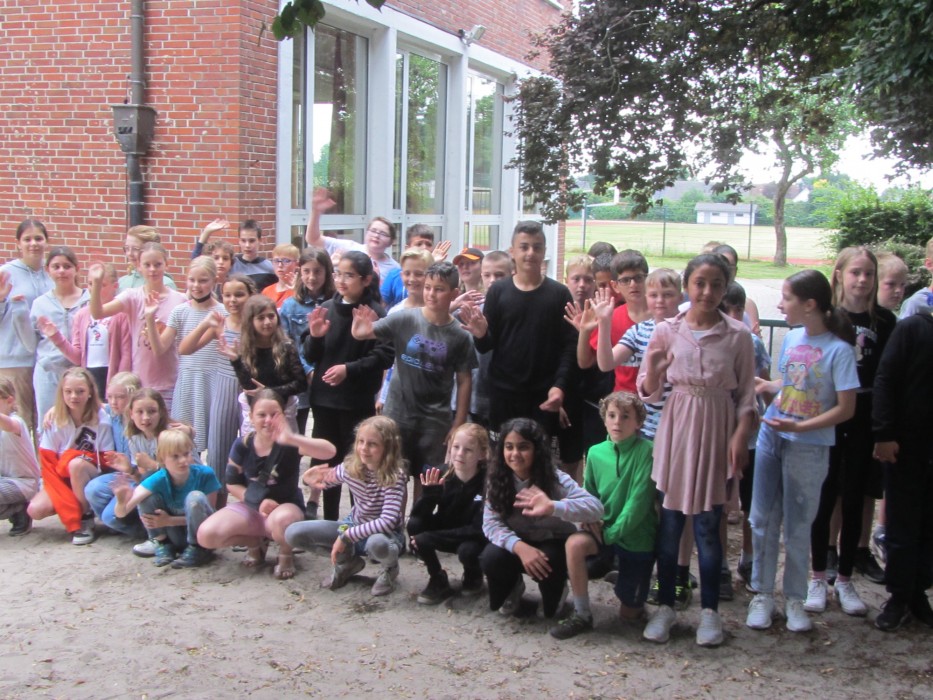 Am letzten Schultag hieß es Abschied nehmen von unseren Viertklässlern. Traditionell wurden sie mit einer „kalten Dusche“ in die weiterführende Schule verabschiedet. Stellvertretend wurden sie von Naile Ildiz, Leiterin der Stufen 5/6 der KGS Rastede, begrüßt. Wir wünschen alles Gute!