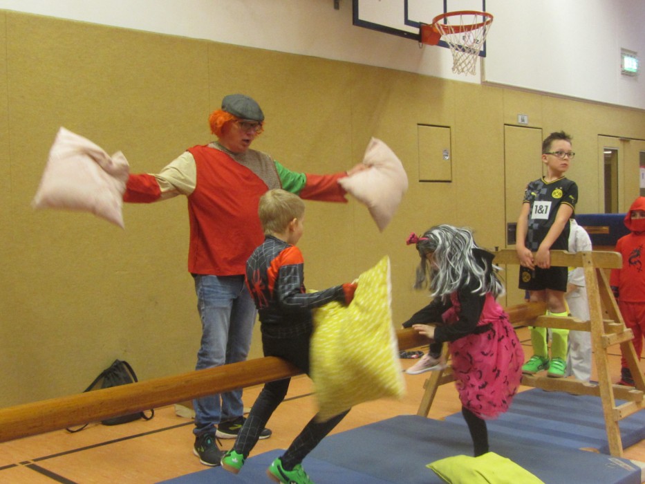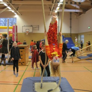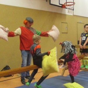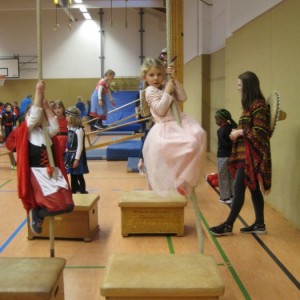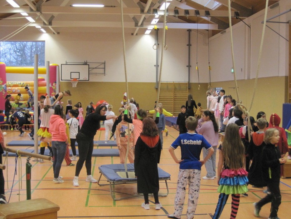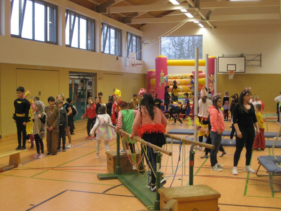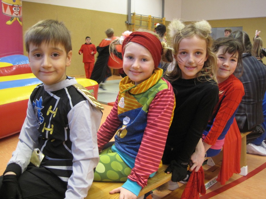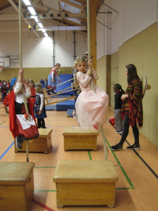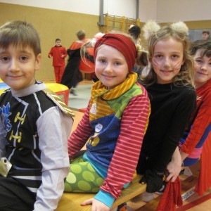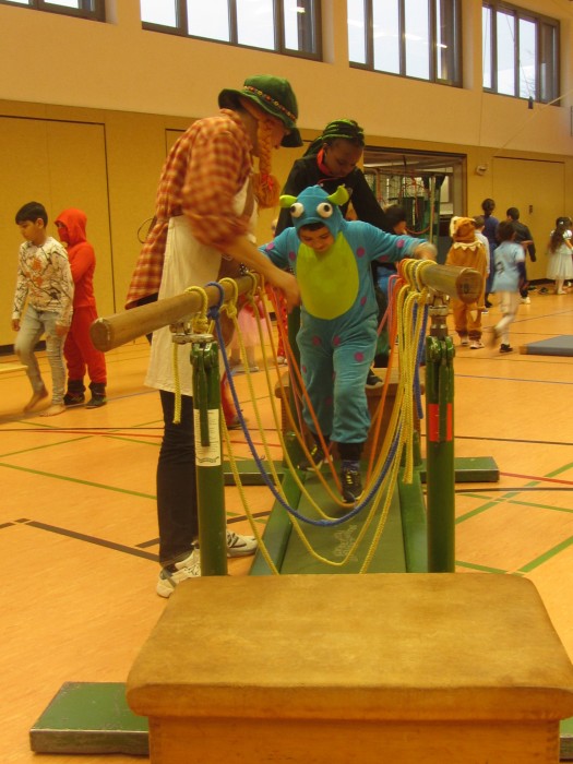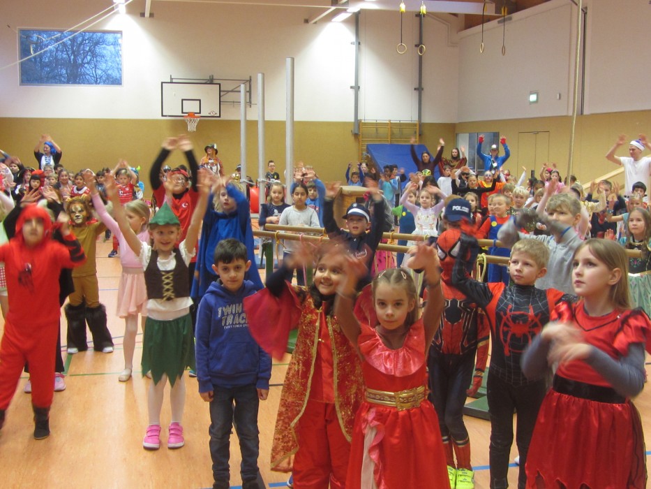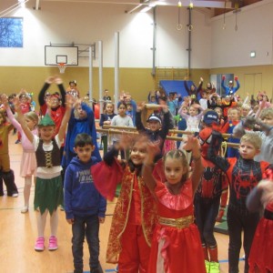 Jede Menge Spaß hatten die Kinder am Rosenmontag bei den Faschingsfeiern. Und so sah man am Morgen viele toll verkleidete Kinder auf dem Schulhof: Hexen, Vampire, Cowboys, Prinzessinnen und viele andere Gestalten machten sich auf zur Schule. Neben den Feiern in den Klassen, erwartete die Kinder in der Kleinen Turnhalle bunte Bewegungsstationen, an denen sie sich so richtig austoben konnten.
