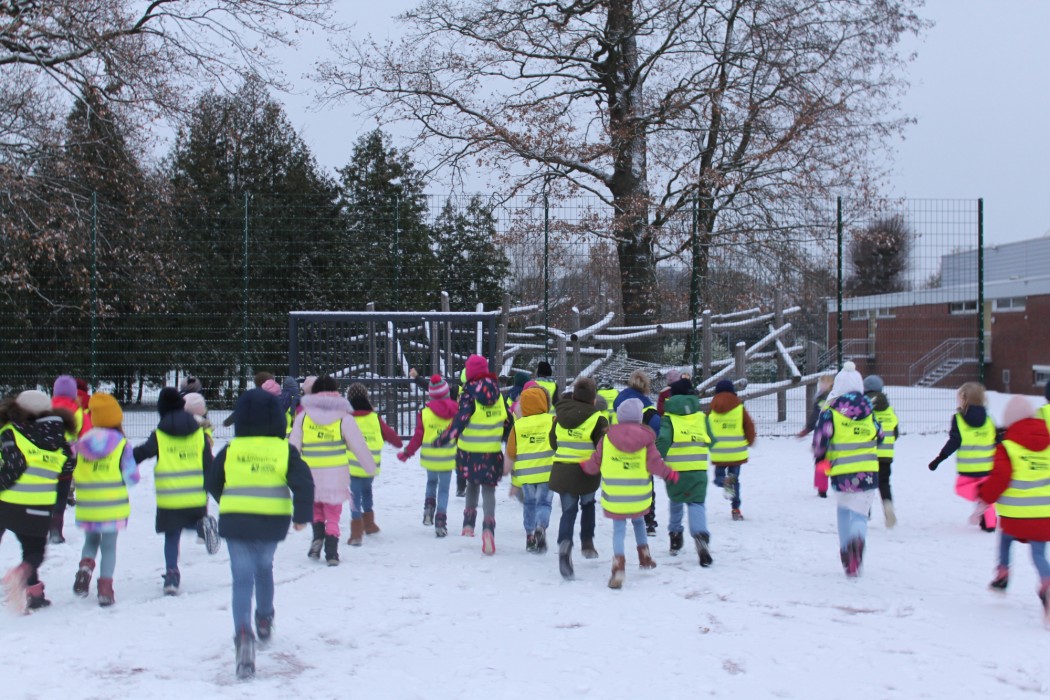 Um den Schulweg für die Kinder sicherer zu machen, stattete die Verkehrswacht die Erstklässler mit Warnwesten aus. Besonders in den dunklen Herbst- und Wintermonaten sind Kinder auf dem Schulweg besonders gefährdet. Wenn die Kinder dunkle Kleidung ohne helle, reflektierende Materialien tragen, sind sie bei schlechtem Wetter und bei Dunkelheit im Straßenverkehr oft kaum zu sehen.